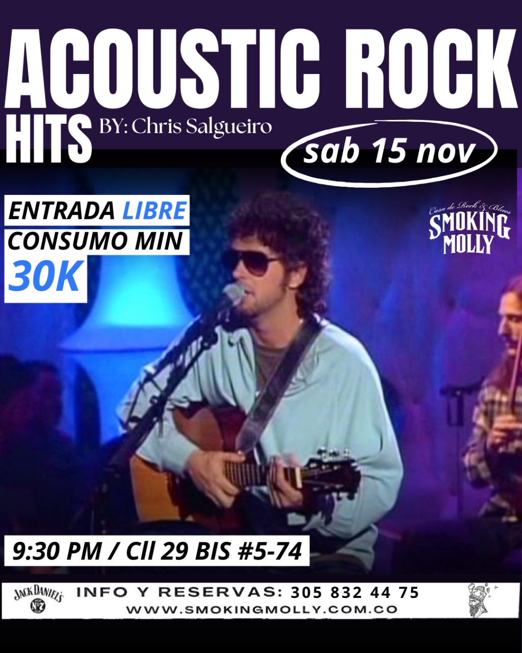 #SmokingMolly #AcousticRockHits #RockAcústico #ChrisSalgueiro #MusicaEnVivo #RockEnBogotá #NocheDeRock #LiveSession