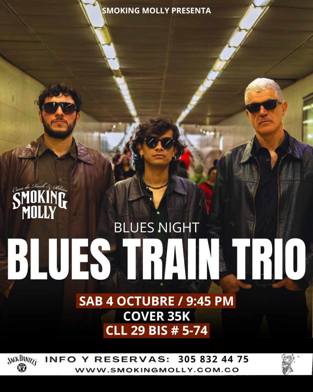 El viernes 4 de octubre, Smoking Molly se viste de azul para recibir a Blues Train Trio, una banda que lleva el blues en la sangre y lo transforma en una experiencia vibrante y poderosa.