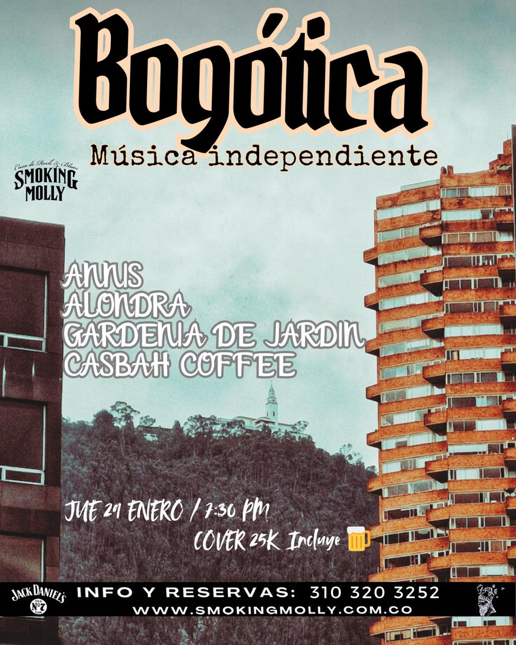Este jueves 29 de enero, Smoking Molly abre el escenario para celebrar la escena independiente bogotana, una noche para descubrir nuevas voces, canciones honestas y sonidos que no siguen fórmulas.
