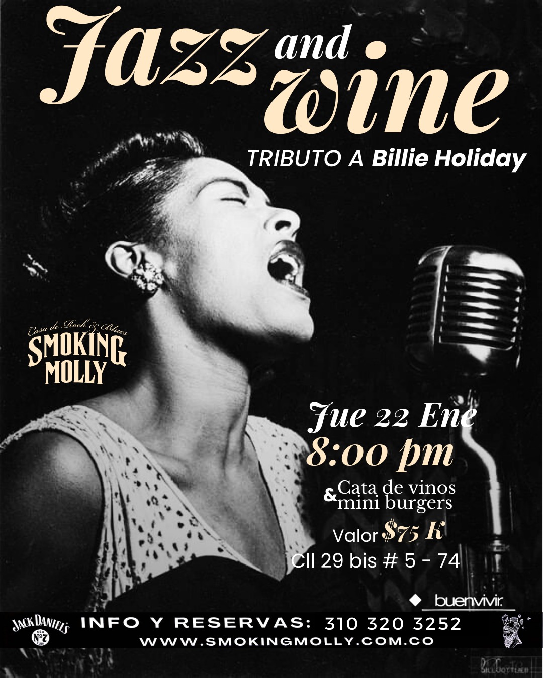 #JazzAndWine #TributoABillieHoliday #JazzEnVivo #WineExperience #JazzLovers #NochesDeJazz #MusicaEnVivo #BogotáNocturna #SmokingMolly 🍷✨🎷